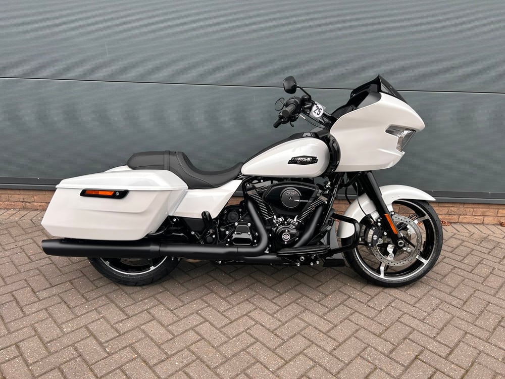 BRAND NEW 2024 HARLEY DAVIDSON ROADGLIDE. The sharknose fairing takes on new life with a sculpted silhouette, fully integrated LED lighting, and a new windshield design. Designed using computational fluid dynamics (CFD) to improve aerodynamic efficiency, the Road Glide fairing optimizes on-road performance and rider comfort with an aggressive new take on the original frame-mounted fairing. Seamlessly integrated, the full LED lighting package improves visibility, integrates turn signals, and accentuates the lines of the sharknose fairing, creating a distinctive look that’s instantly recognizable, day or night. Wrapped in Dunlop tires, the 483 mm front and 457 mm rear cast-aluminium wheels feature a black finish with machine cut highlights that reveal contrasting bright aluminium. With increased displacement, torque, and horsepower, the 2024 engine features new liquid-cooled cylinder heads that further optimize thermal comfort for the rider, especially in low-speed riding situations and hot weather. The 2024 Road Glide is 7.3 kg lighter than the 2023 Road Glide Special, enhancing all aspects of performance, including acceleration and braking. The customizable in-dash experience features navigation, three unique display options, and an all-new suite of connected infotainment options powered by Harley-Davidson’s Skyline OS. Ride Modes provide more control and confidence during various riding conditions by electronically adjusting performance characteristics and the level of safety technology intervention. Each ride mode (Road, Sport, Rain, Custom) brings to life a unique combination of power delivery, engine braking, Cornering Antilock Braking System (C-ABS), and Cornering Traction Control System (C-TCS) settings. Part exchange, finance and nationwide delivery available. Call the sales team to discuss on 01159033777.