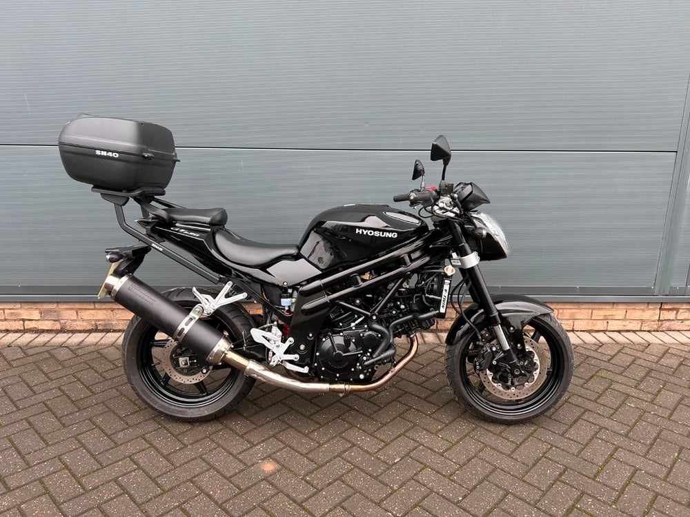 TAKEN IN PART EXCHANGE IS THIS HYOSUNG GT650 FINISHED IN GLOSS BLACK. 1 OWNER FROM NEW WITH LESS THAN 10,000 MILES. HEATED GRIPS AND A TOPBOX ARE THE ONLY ACCESSORIES FITTED. WE WILL SAFETY CHECK THE BIKE AND CARRY OUT A FRESH MOT FOR THE NEW KEEPER. PLEASE CONTACT THE SHOWROOM ON 01159033777 FOR MORE DETAILS.